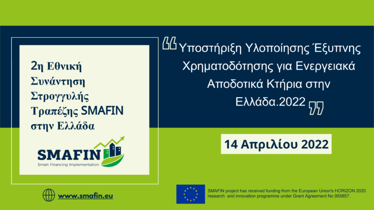 ⏳Counting down the days for the 2nd SMAFIN National Roundtable in Greece, on the 14th of April 2022! The topics of the 3 parallel sessions will be: ✅Financing energy efficiency in residential buildings ✅Financing energy efficiency in public buildings ✅ EU Taxonomy